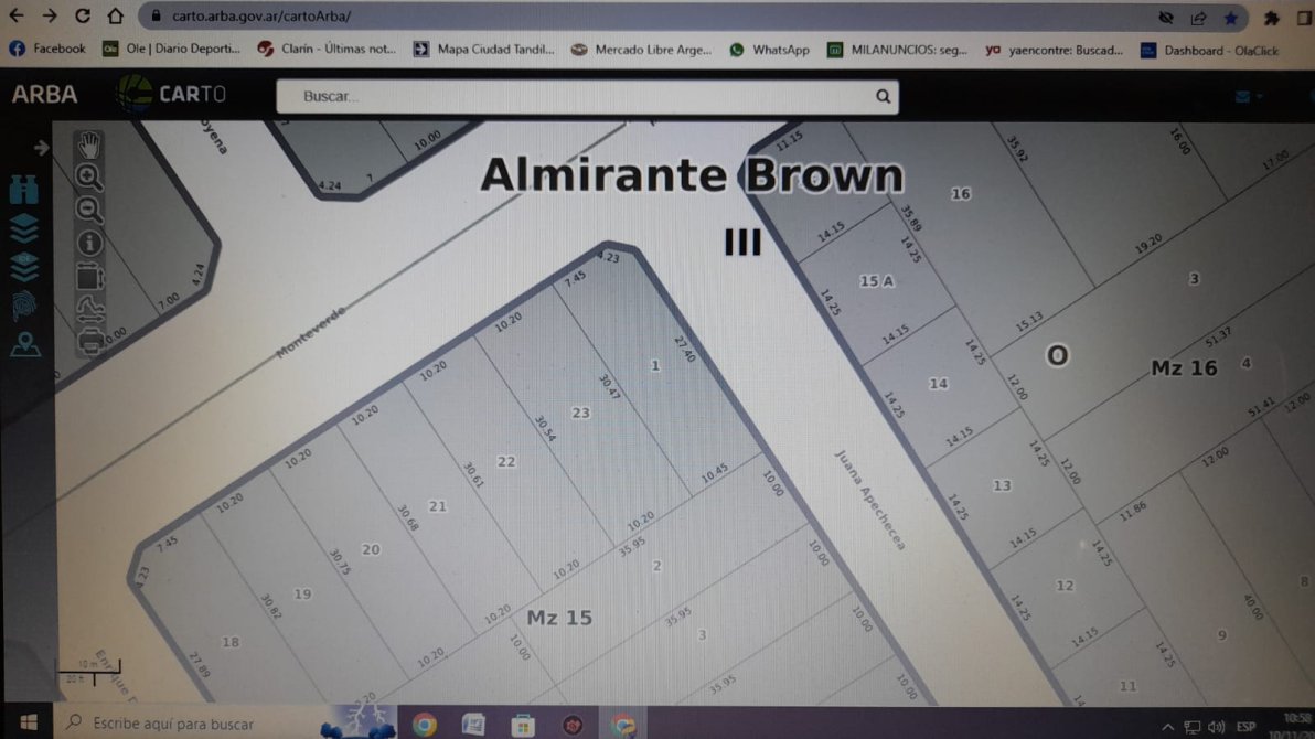 SERVICIOS EN SU FRENTE CONSTA DE AGUA CORRIENTE, CLOACAS, LUZ Y GAS. ASFALTO.